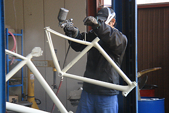 自転車フレームのような複雑な形状の物や、複雑なデザインの塗装も可能です。