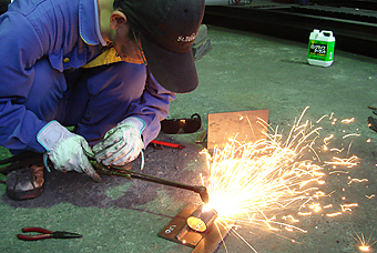 ガス溶接は、金属の切断やマフラーなどの穴埋めに用います。